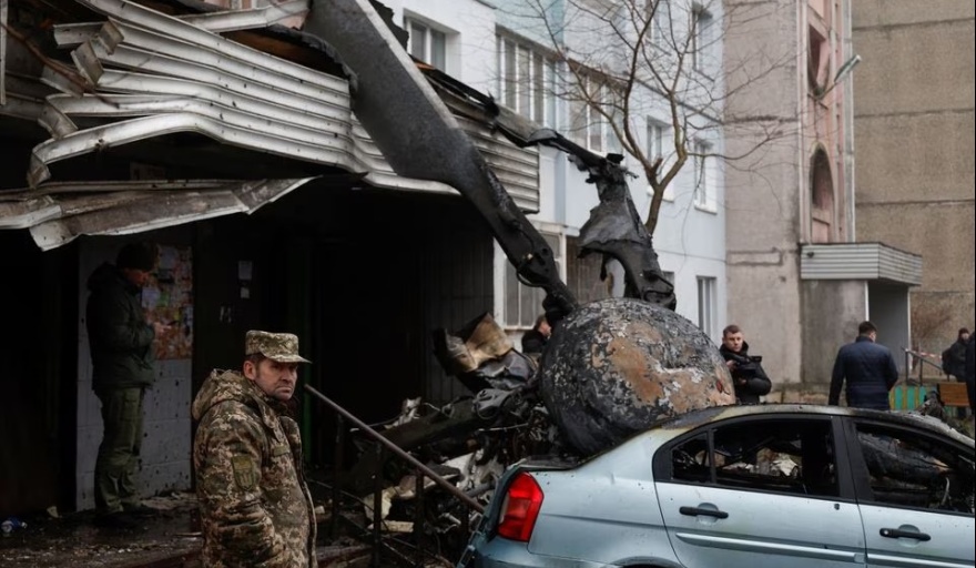 El jefe de la policía nacional, Ihor Klymenko, confirmó que el ministro del Interior, Denys Monastyrskyi, fue asesinado junto con su primer adjunto, Yevheniy Yenin, y otros funcionarios del ministerio que volaban en el helicóptero operado por el servicio de emergencia estatal.